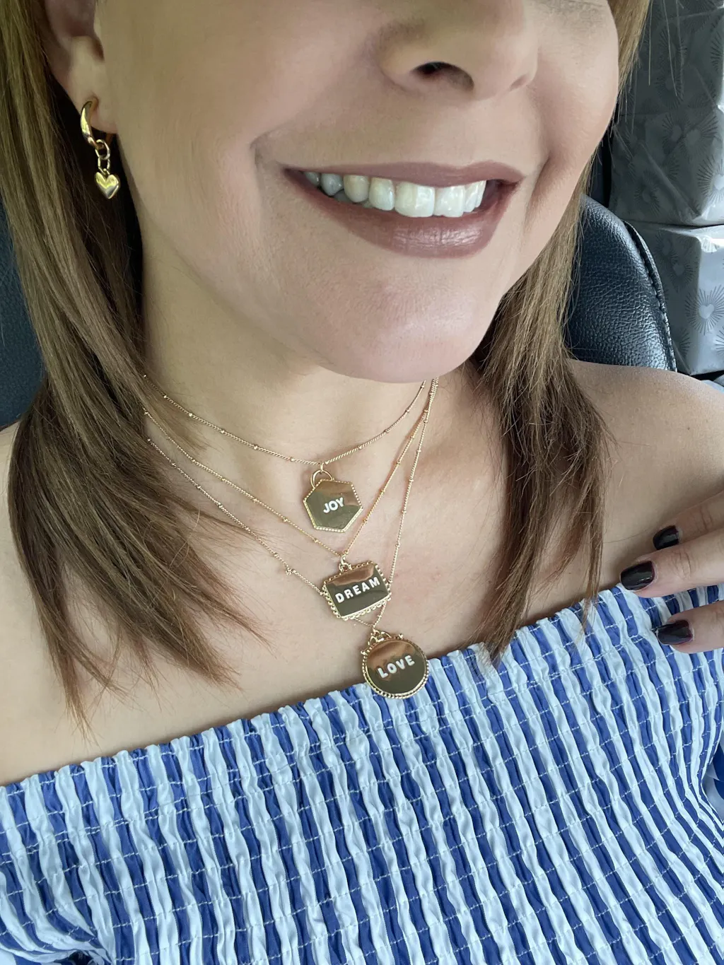 Cadena en oro con 2 dijes de corazón (1 grande en oro “endless” y 1 pequeño en plata “love”)
